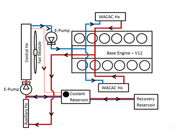 The cooling system contains the High Temperature System (HTS), the Low Temperature System (LTS), and the Driveline Cooling System (DCS).